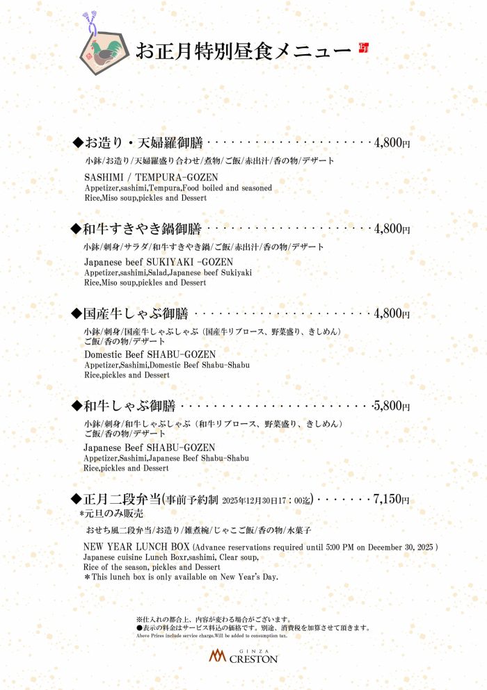 2026年1月1日~1月3日のランチタイムはお正月限定メニューでのご案内です。