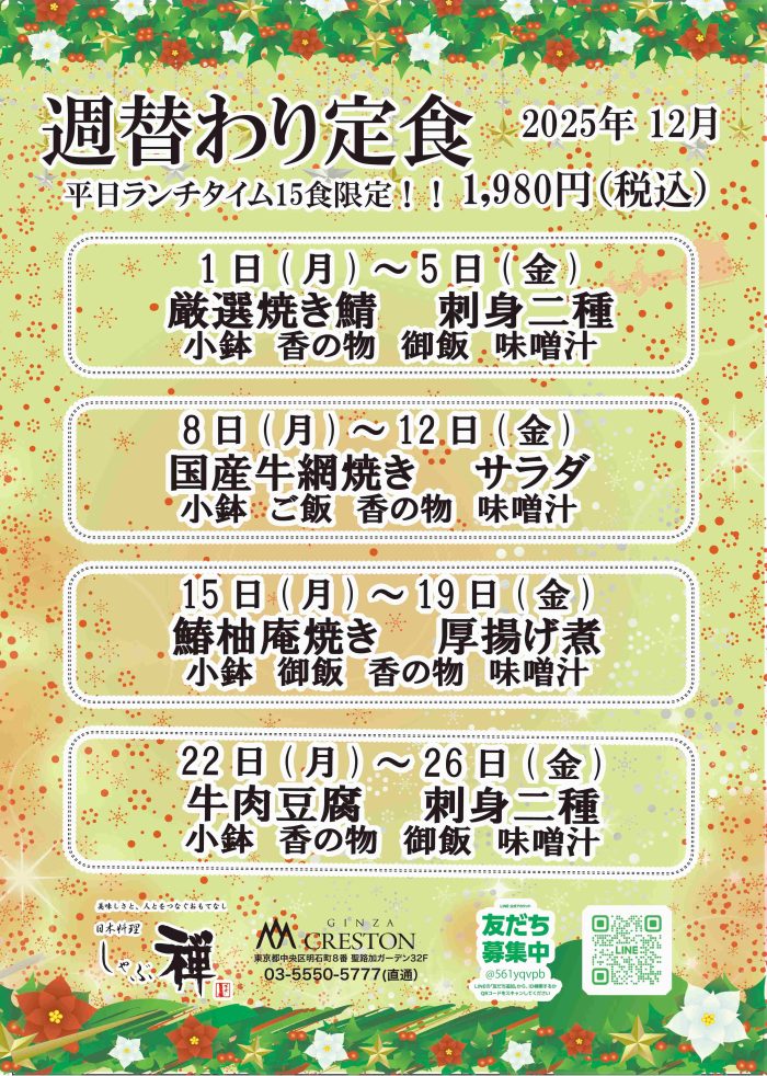 ***** お正月限定ランチメニュー2026年1月1日~1月3日 *****