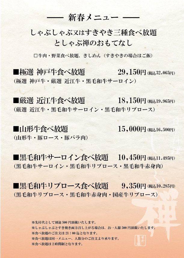 ※1/2~4は下記の「新春メニュー」のみのご提供となります。